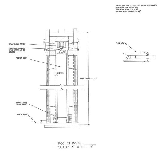 A standard sliding pocket door has the same sizes of a corresponding hinged door.